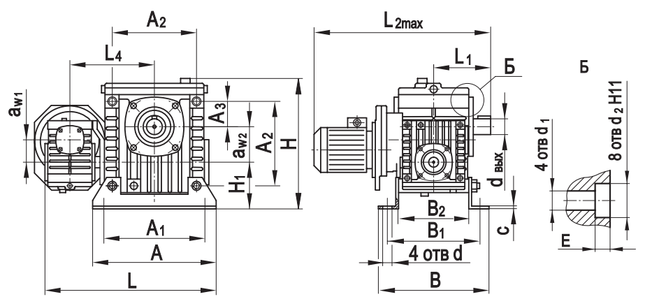 Типоразмер аW1 аW2 А А1 А2 А3 В В1 В2 L* L1* L2max L3* L4 Н Н1 сd d 1 d2 Еd вх dвых