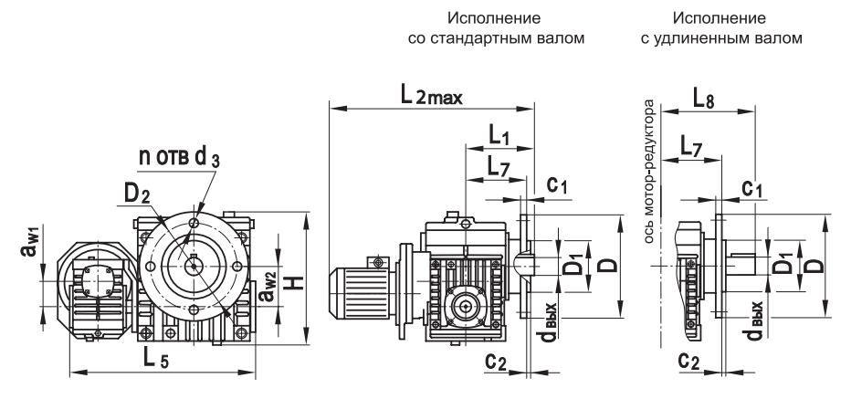 Типоразмер аW1 аW2 D D1 D2 H L1* L2max L3* L5 L7 L8*с 1 с2 d3 dвх dвых n