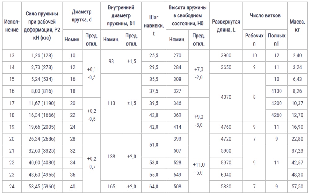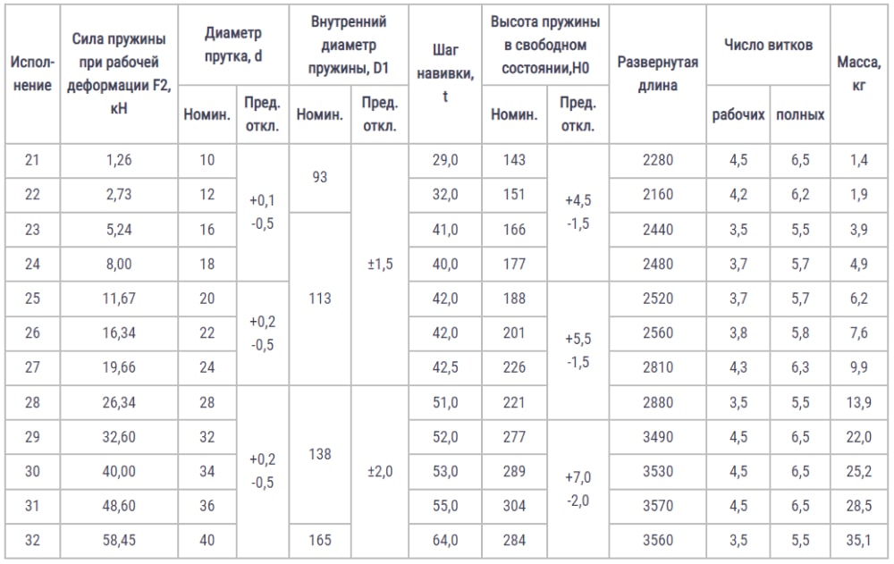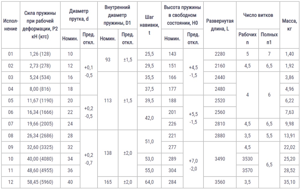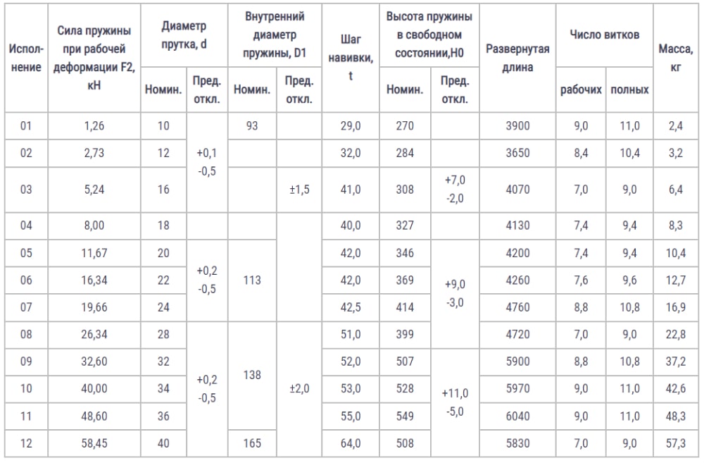 Конструкция размеры и силы пружин ОСТ 24.125.109-01
