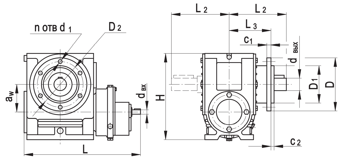aw D D1 D2 Н L L1max L2 L3 С1 С2 d1 dвх dвых