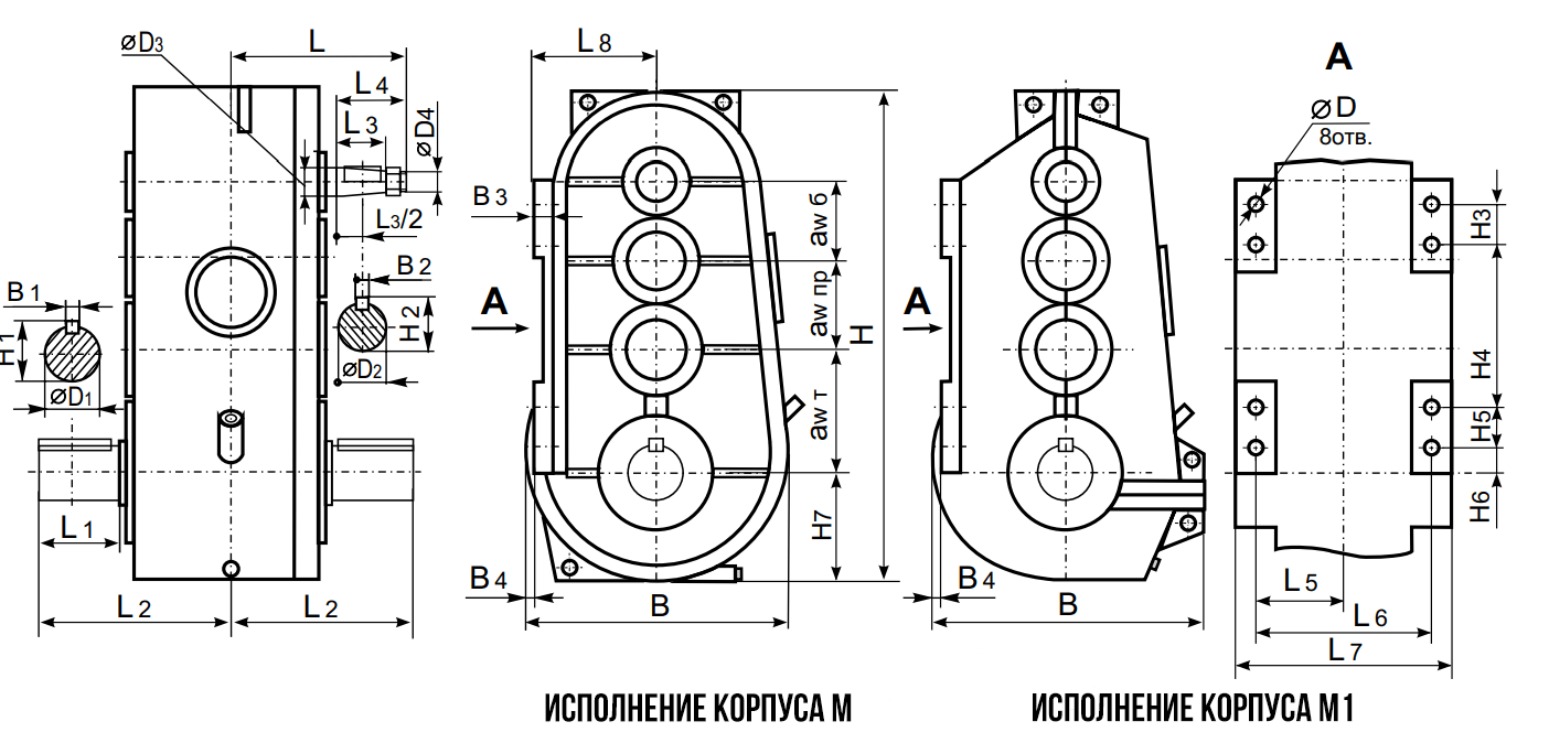 Типоразмер H4 H5 H6 H7 oD oD1 oD2 oD3 oD4 B B1 B2 B3 B4