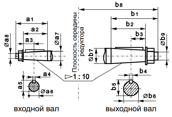 Размеры конца тихоходного вала в виде зубчатой полумуфты